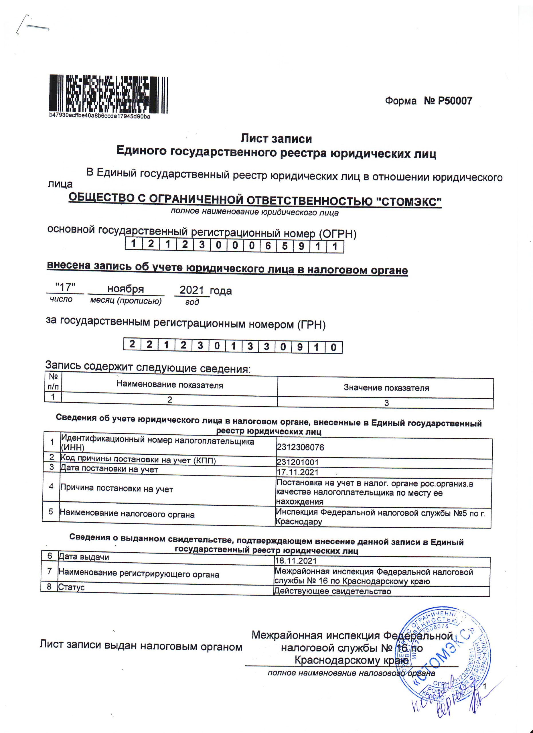 ЕГРЮ Форма №Р50007. стр.1-2 (Посмотреть \ Скачать)